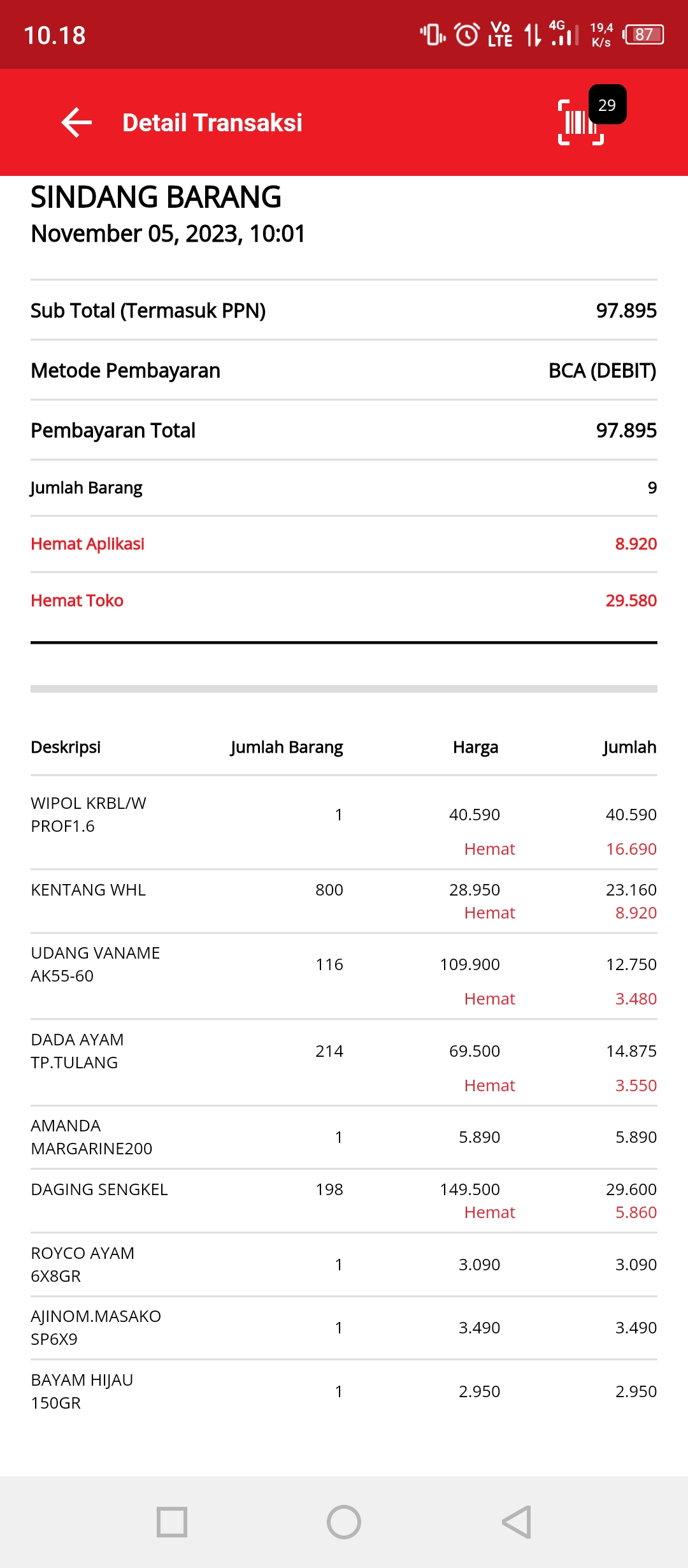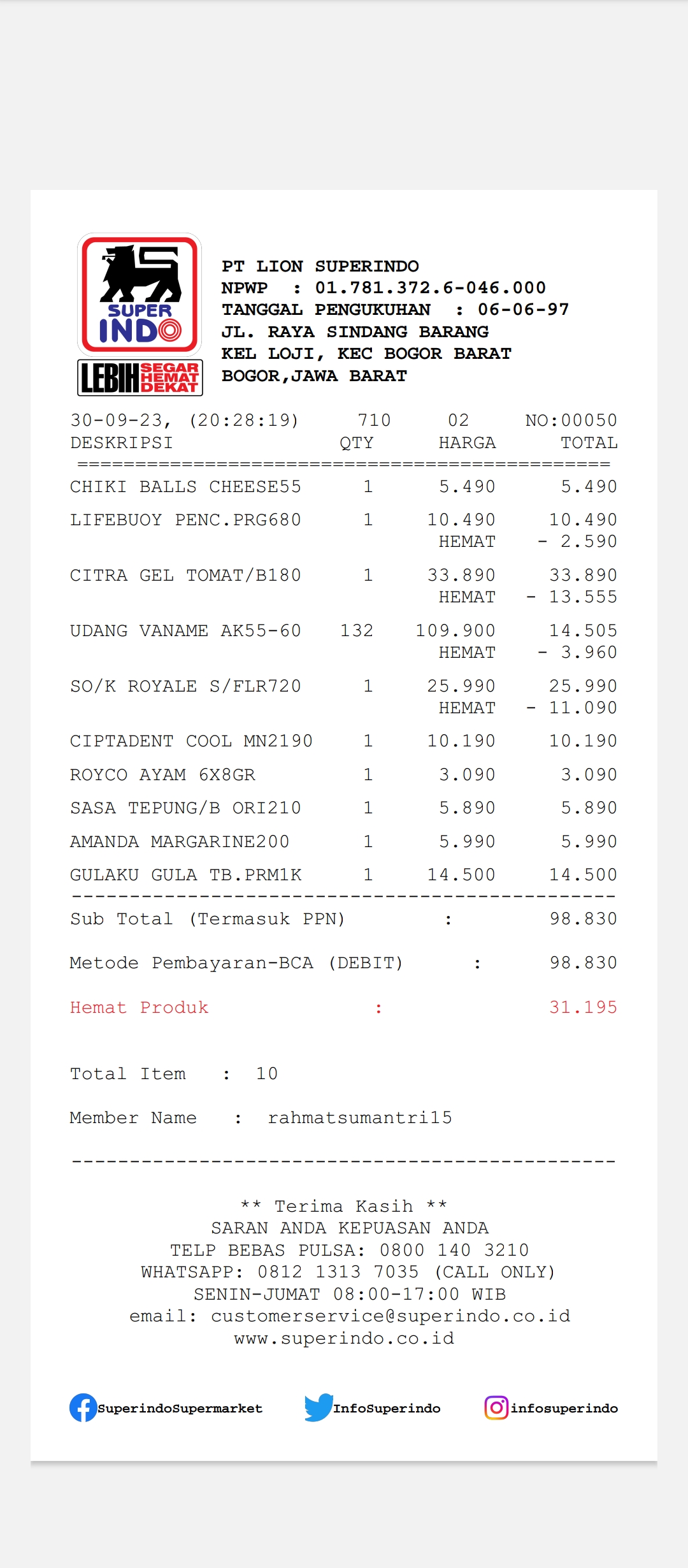 | 04/09/2023 | Ayam dan nugget Ayam untuk mamah. Nugget untuk Sintia dll |